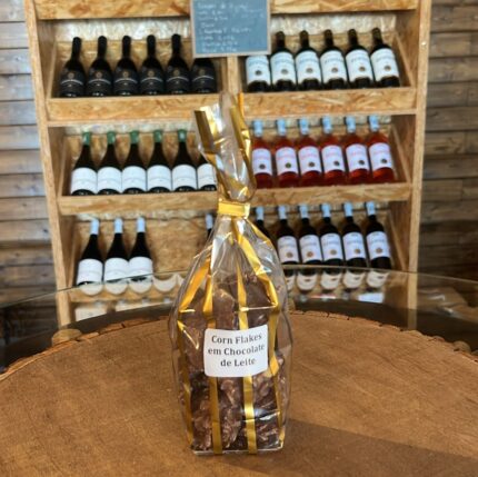 CornFlakes em chocolate: chocolate de leite com recheio de corn flakes, sementes abóbora, mirtilos. (IVA INCLUIDO À TAXA DE 23%)